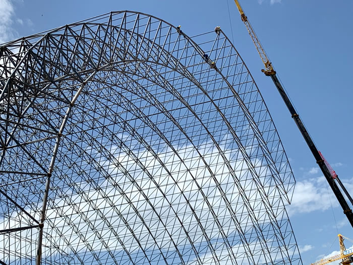 (2)网架加工前应对现场尺寸进行复测,确认无误后方可进行加工、安装;网架制作、运输、安装应遵守《空间网格结构技术规程》JGJ7-2010、《钢网架柳州螺栓球节点》JG/T 10-2009、《钢网架柳州螺栓球节点用高强度螺栓》 GB/T 16939-2016、《柳州钢结构柳州工程柳州施工规范》 GB50755-2012、《柳州钢结构柳州工程施工质量验收标准》 GB50205-2020。